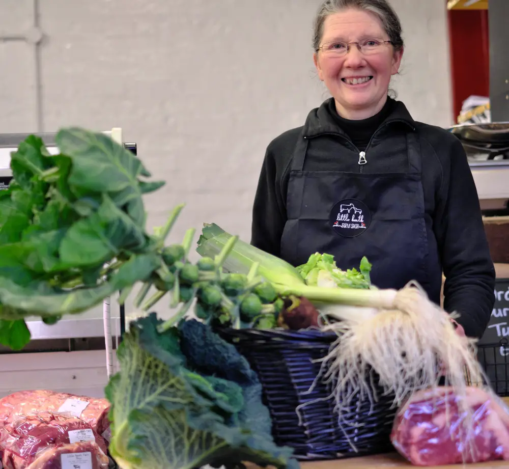 SUE JONES: Little Heath Farm is on the National Trust Dunham Massey estate, and has been farmed by the Jones family since 2003. The farm shop is run by myself and the family and open every day from 10am to 5pm. We are passionate about sustainable farming and this reflects into the taste and quality of our meat and the local produce we sell.