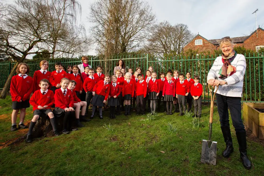 Members of Bollin’s School and Eco Councils attended a special planting ceremony, alongside parents involved in developing the school grounds and friends of the school past and present.