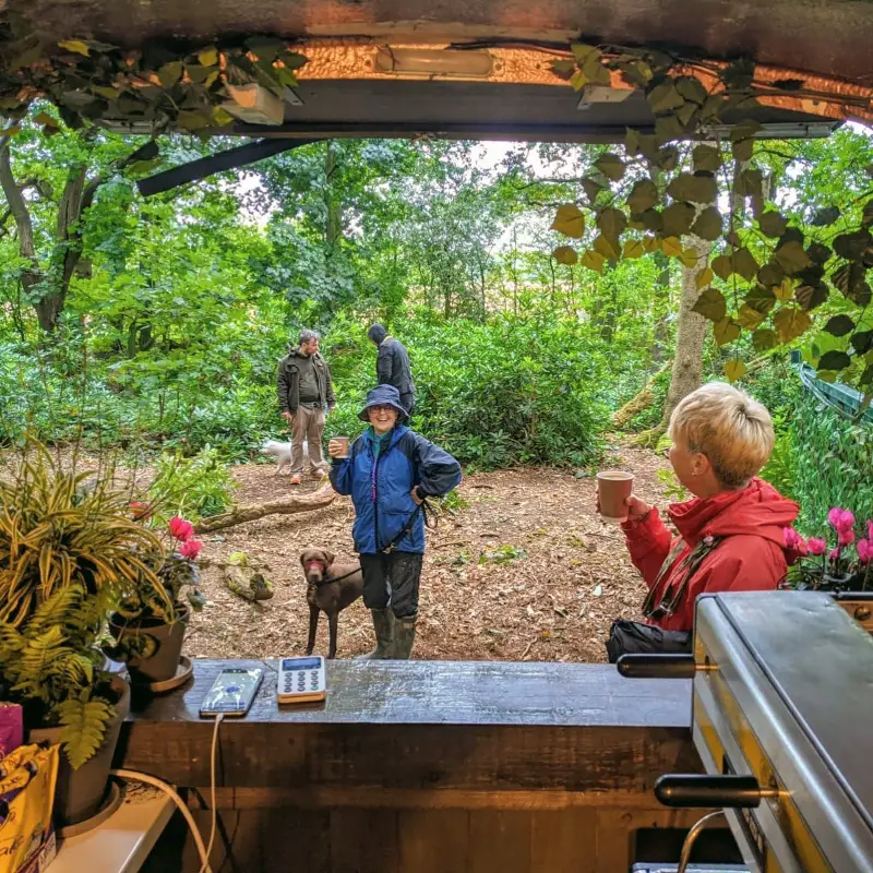 Adam Taylor owns the outdoor cafe in ancient woodland near the River Bollin, where he also runs courses, workshops and events for his Into the Wild Bushcraft business.