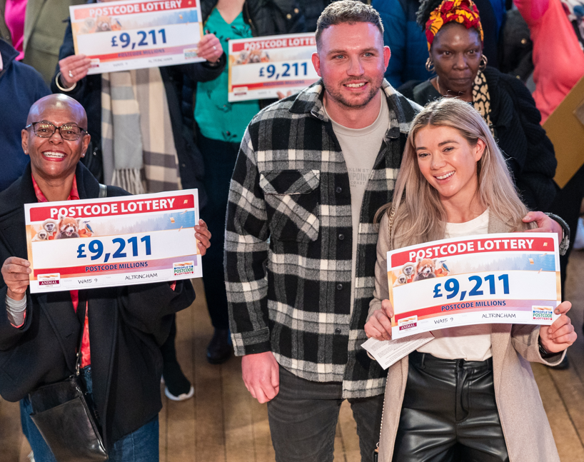 195 residents picked up a cheque for £9,211 for having one ticket, 23 won £18,422 for having two tickets, six claimed £27,633 for three tickets - and the full winning postcode - WA15 9DZ - was revealed on the night, bagging two players a total of £407,032 each.