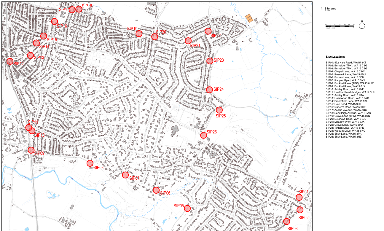 They would be installed on the following roads: Hale Road, Burnside, Chapel Lane, Rossmill Lane, Barrow Lane, Rappax Road, Bankhall Lane, Ashley Road, Heather Road (bridge), Hazelwood Road, Broomfield Lane, Queen's Road, Acacia Avenue, Sandileigh Avenue, Grove Lane, Delahays Road, Meadow Way, Grove Lane, Tintern Drive, Woburn Drive and Shay Lane.