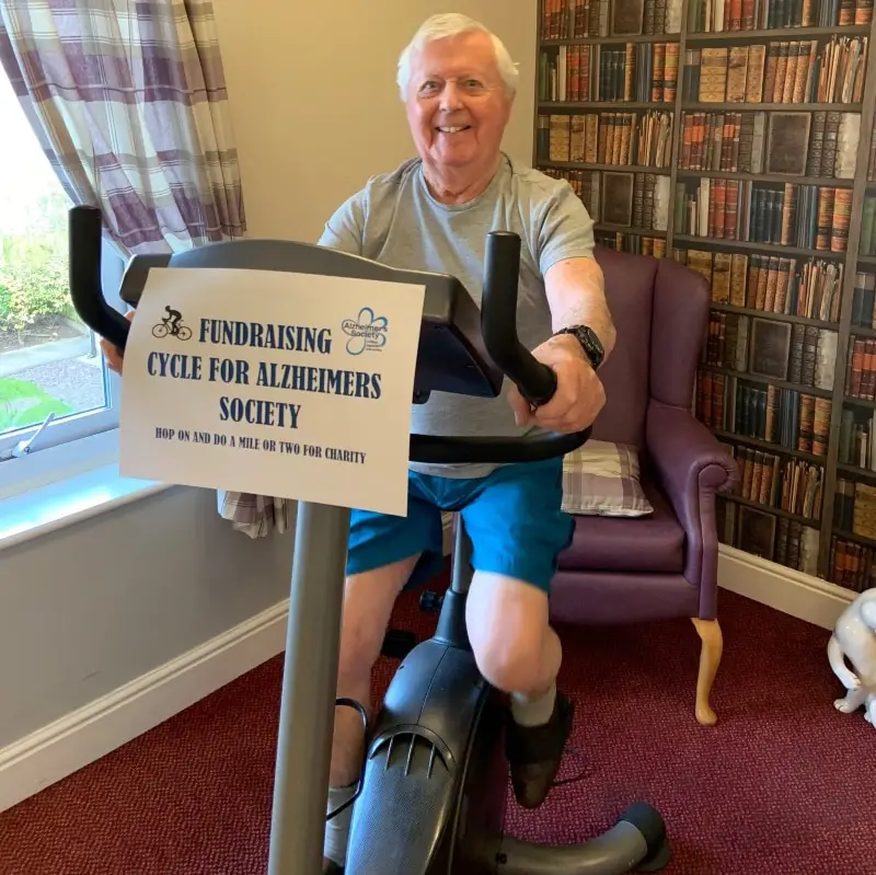 His enthusiasm even encouraged staff and fellow residents at the Kingsley Healthcare run home to join him on an indoor cycle marathon to raise funds for the Alzheimer’s Society.