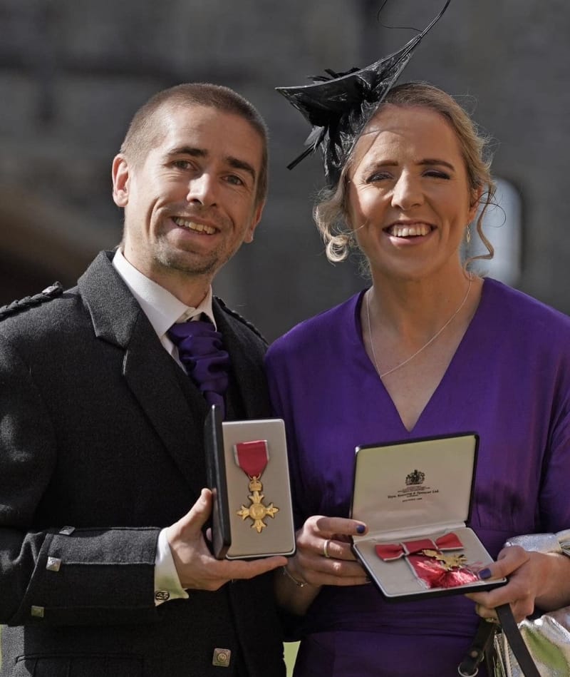 “We got our MBEs separately at Buckingham Palace, Neil off the Queen in 2013, me off Prince Charles in 2017, so to then be able to go to Windsor Castle and receive our OBEs together was pretty special... not many couples get that opportunity.” This time Princess Anne did the honours.