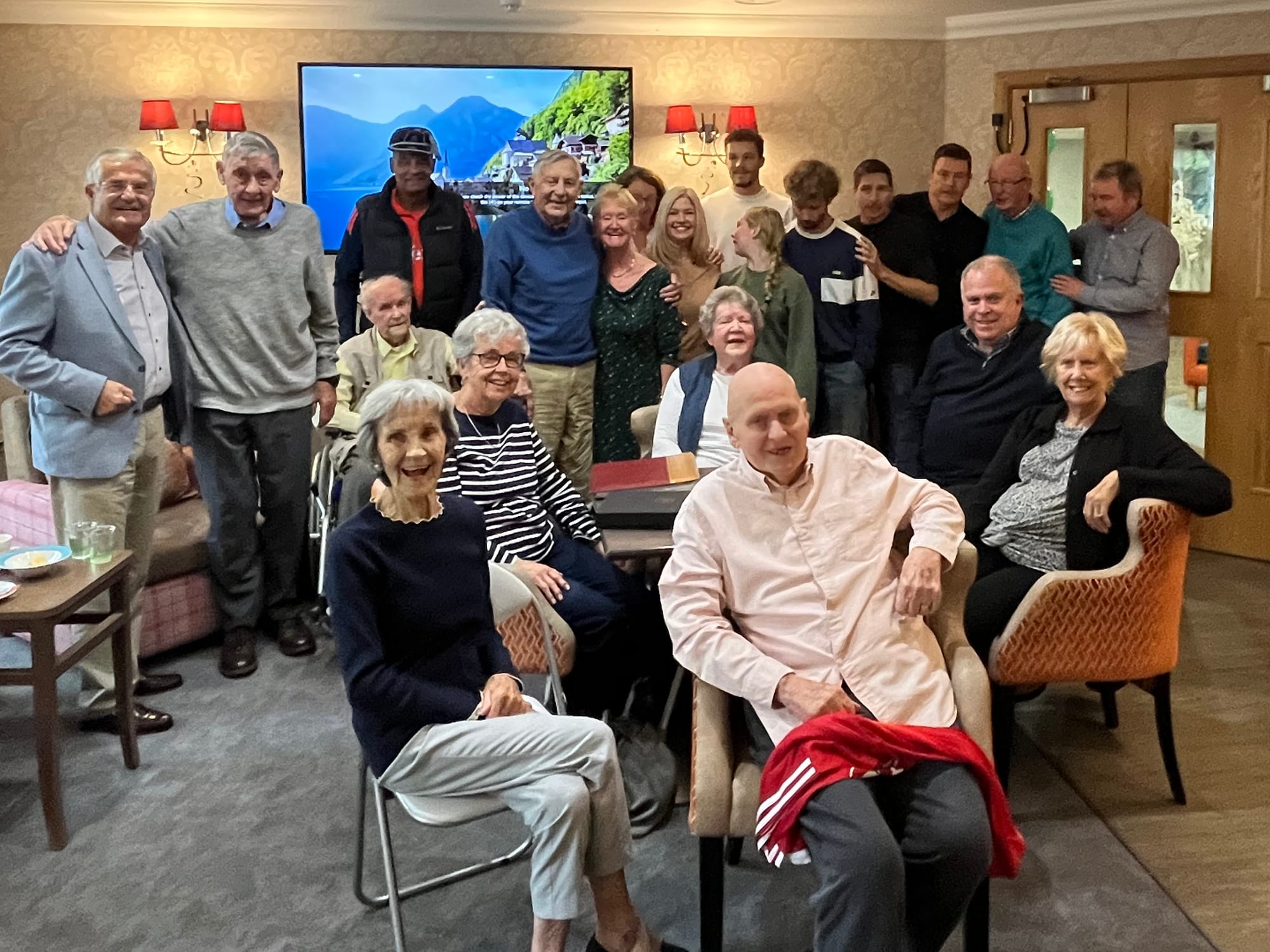 Steve Fleet, ex-Manchester City player and old friend, and Fred Eyre, ex-Manchester City player and BBC commentator, also visited the home for the special occasion.