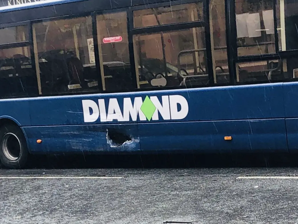 It’s thought the driver – who is not thought to have suffered serious injuries – was pulling out of the hospital in a VW Polo when the collision with the Diamond bus occurred.