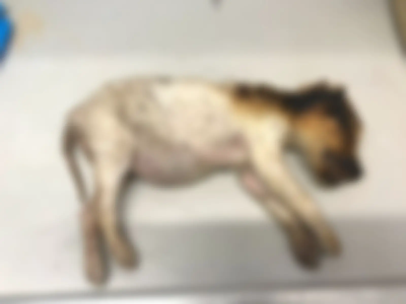 The deceased puppy, believed to be a labrador-type breed, was found with burns to its mouth and head.