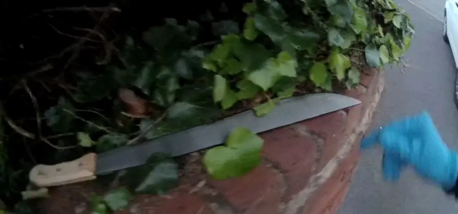 Two of the men got out of the vehicle armed with machetes and ran towards the officer in the vehicle before getting back into the Focus and driving off before abandoning it in the Racecourse estate in Sale.