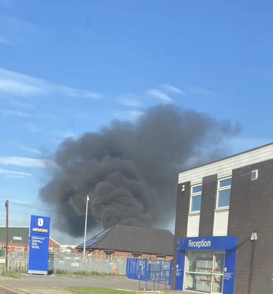A large plume of black smoke was seen over the site, which backs on to Craven Road, and local residents reported a brief power cut and a loud bang.