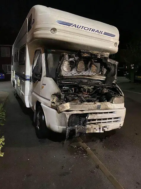 An investigation is underway after a car and motorhome were set ablaze in Timperley last night.