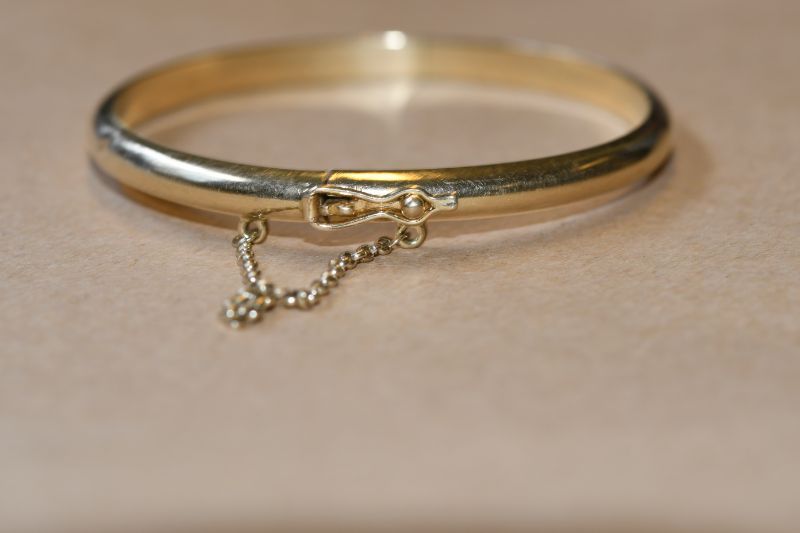 She was wearing dark clothing, pink and brown tortoise shell spectacles, a gold-coloured bracelet with a gold-coloured beaded clasp, and a gold-coloured ring with a knot design on her right ring finger. She was also wearing pink nail varnish.