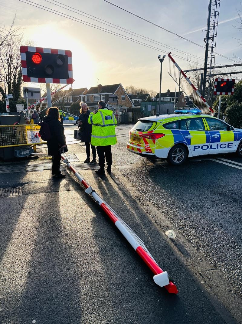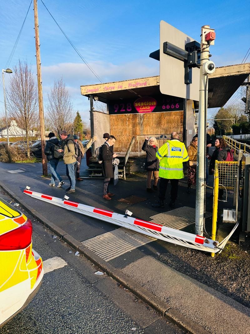 Travel around the Navigation Road station is facing severe disruption this morning after a car crashed into the barriers at the railway junction.