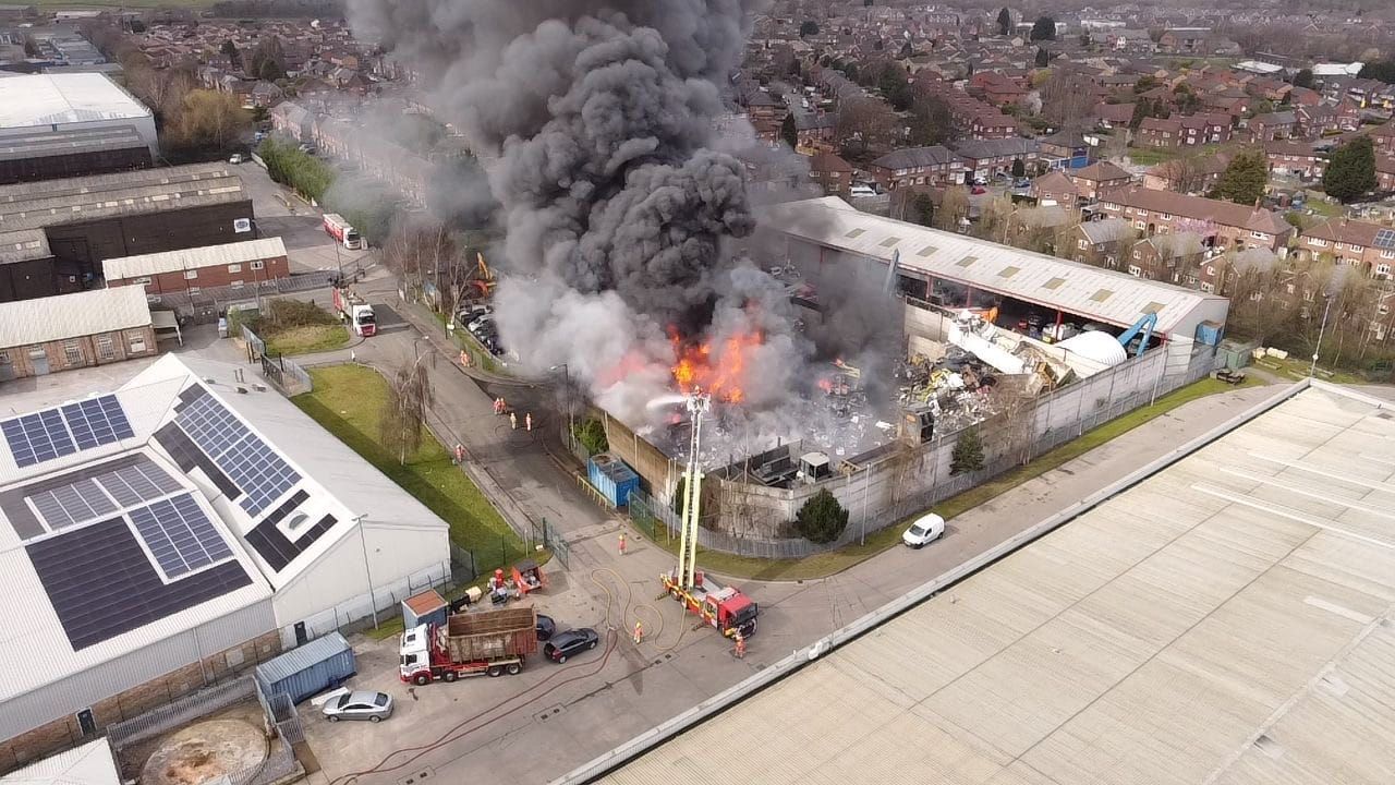 "Four fire engines from Stretford, Altrincham, Sale and Wythenshawe fire stations, along with the aerial appliance from Manchester Central fire station quickly arrived at the scene, where a number of vehicles had caught fire at a scrap yard.