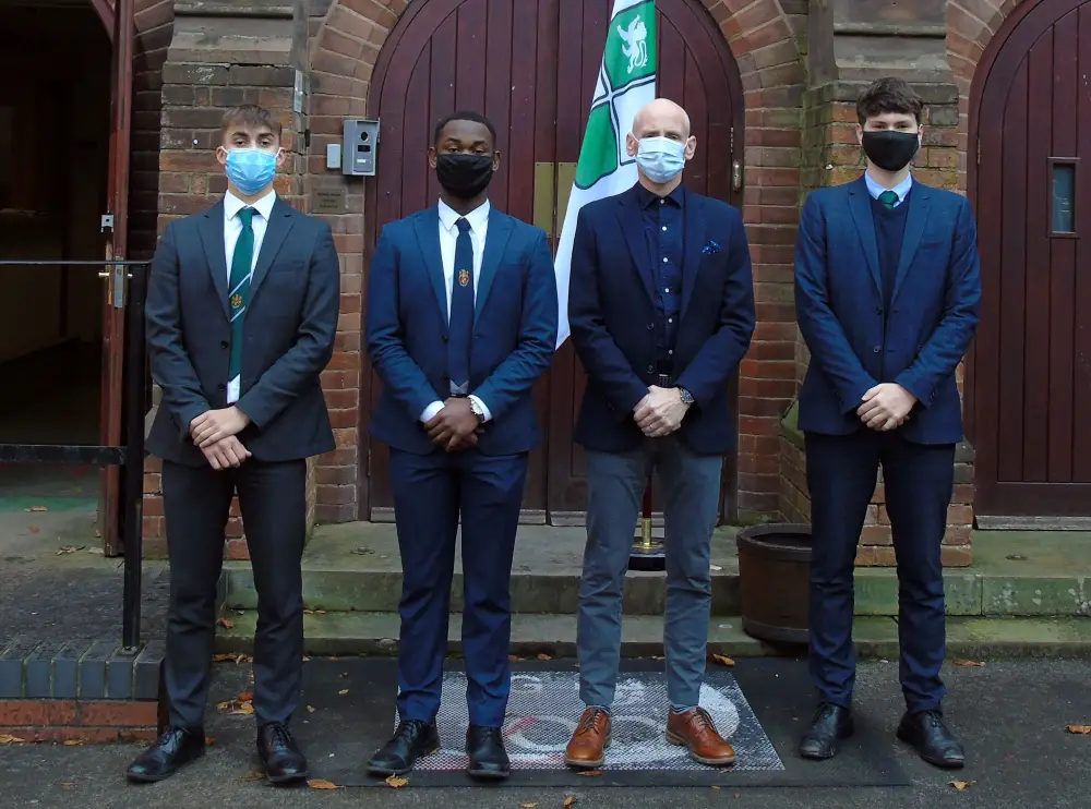 Les Leavitt, Managing Director of Leavitt Walmsley Associates, visited the school for a photo shoot with Graeme Wright, the school’s Head Master, Massey House Manager Scott Meakin, Head Boy Belema, Massey House Captain Kai and his Deputy, Chris.