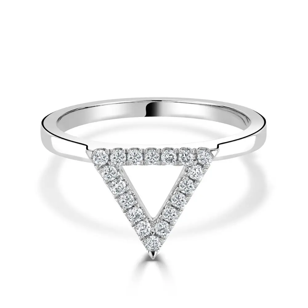 This contemporary suite of jewellery sees diamonds set in bold triangle shapes, a symbol of strength. In 18ct white gold, set with 0.21cts of round brilliant cut diamonds, this elegant piece of jewellery is sure to become a timeless DMR classic.