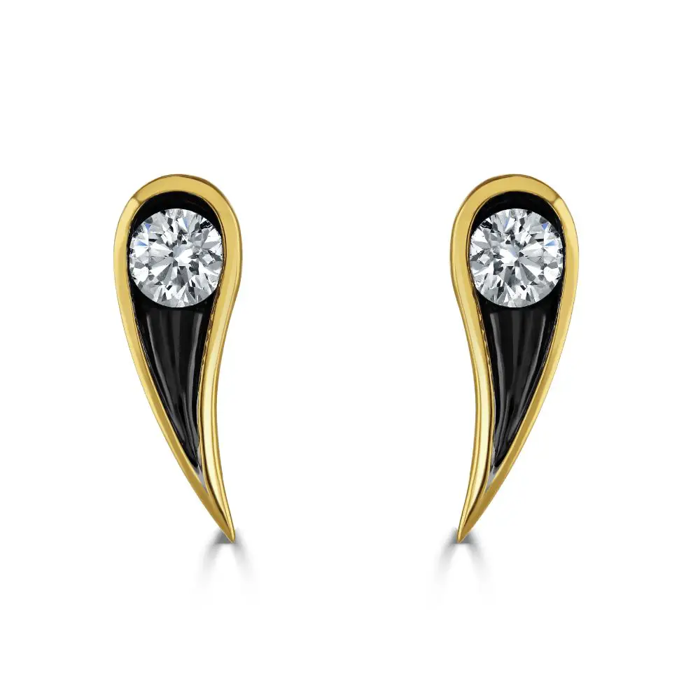 ‘Stella’ is a new single stone diamond collection designed by DMR, available in 18ct yellow and white gold, with black rhodium inlay illustrating a star’s sparkle across the night sky. These contemporary stud earrings can be worn pointing away from the lobe or creeping up the ear, suiting the desires of any jewellery wearer.