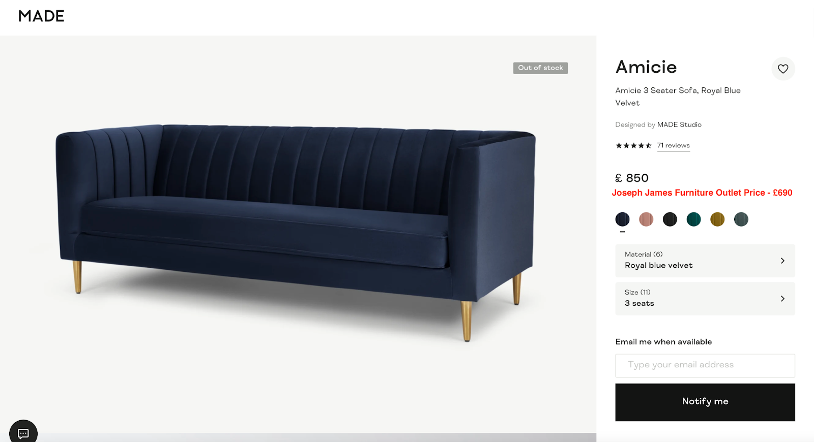 Joseph James Furniture Outlet, 770 Chester Road, Stretford, M32 0FF. The Made.com furniture is available here.