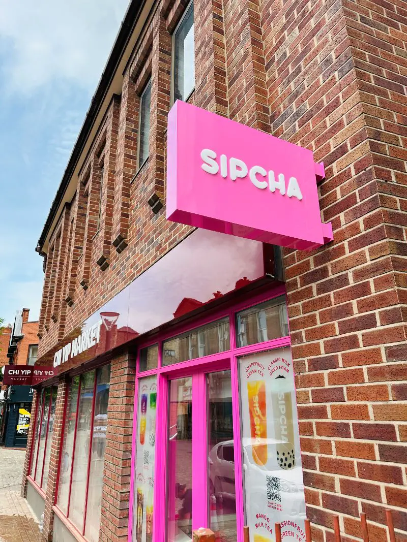 Sipcha, which can additionally be accessed through a window opening on the side of the building, offers a wide variety of bubble tea, milkshakes and bubble waffles, as well as ice cream in flavours such as brown sugar Biscoff, honeydew melon and matcha Oreo.