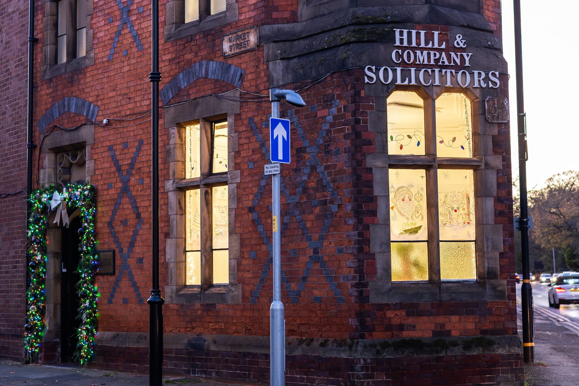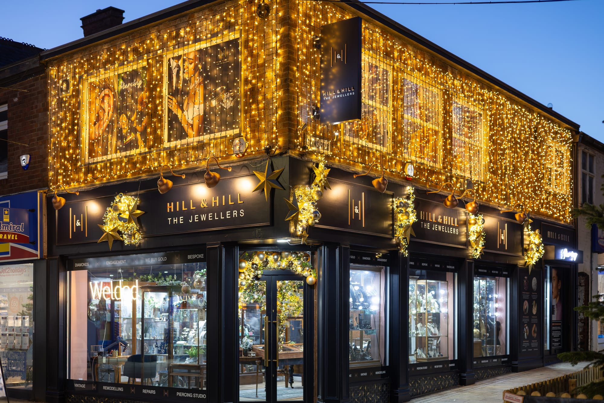 Hill & Co on Market Street was named runner-up for their traditional doorway arch of greenery and lights with a beautiful wreath. The judges praised the "very Dickensian" look on "such a fabulous building", noting that the company's logo even featured on the baubles.