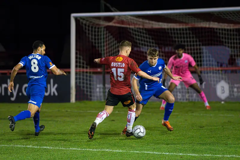 On 87 minutes Shaun Densmore laced a through ball from the right-flank, which was ostensibly intended for Kosylo. Nonetheless, Kosylo let the ball run through his legs, opening up space for Hancock to run into. Altrincham’s number 10 controlled the ball just outside the penalty area, taking aim and finding the bottom left-hand corner in dramatic fashion.
