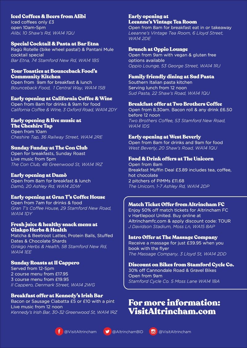 Many of Altrincham’s cafés and restaurants are opening early to serve pre-race breakfast and brunch.