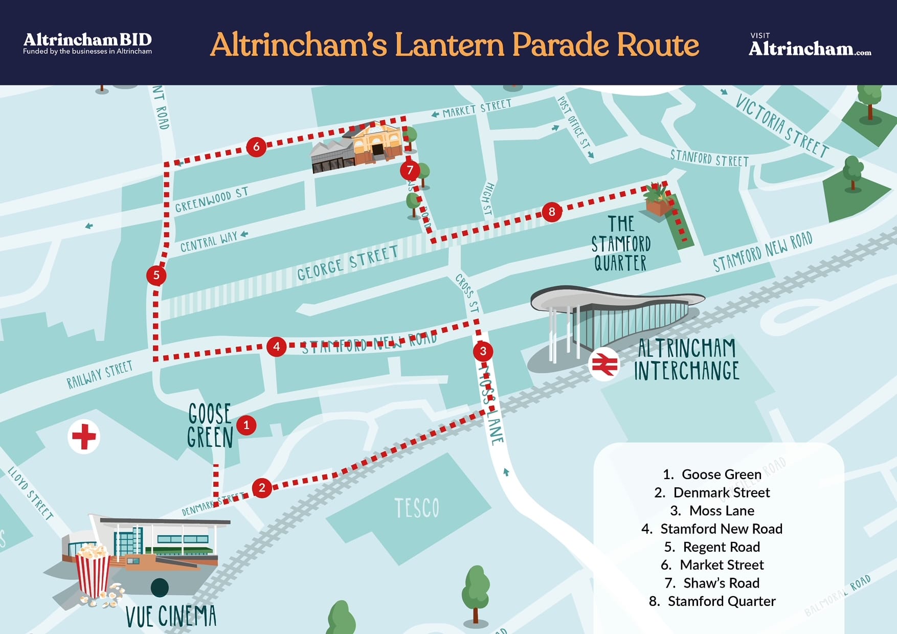Altrincham’s Lantern Parade is organised by Altrincham BID, who produce VisitAltrincham.com, and funded by Altrincham’s BID businesses, with additional support from The Stamford Quarter, Foster with Trafford and SPORTFIVE.