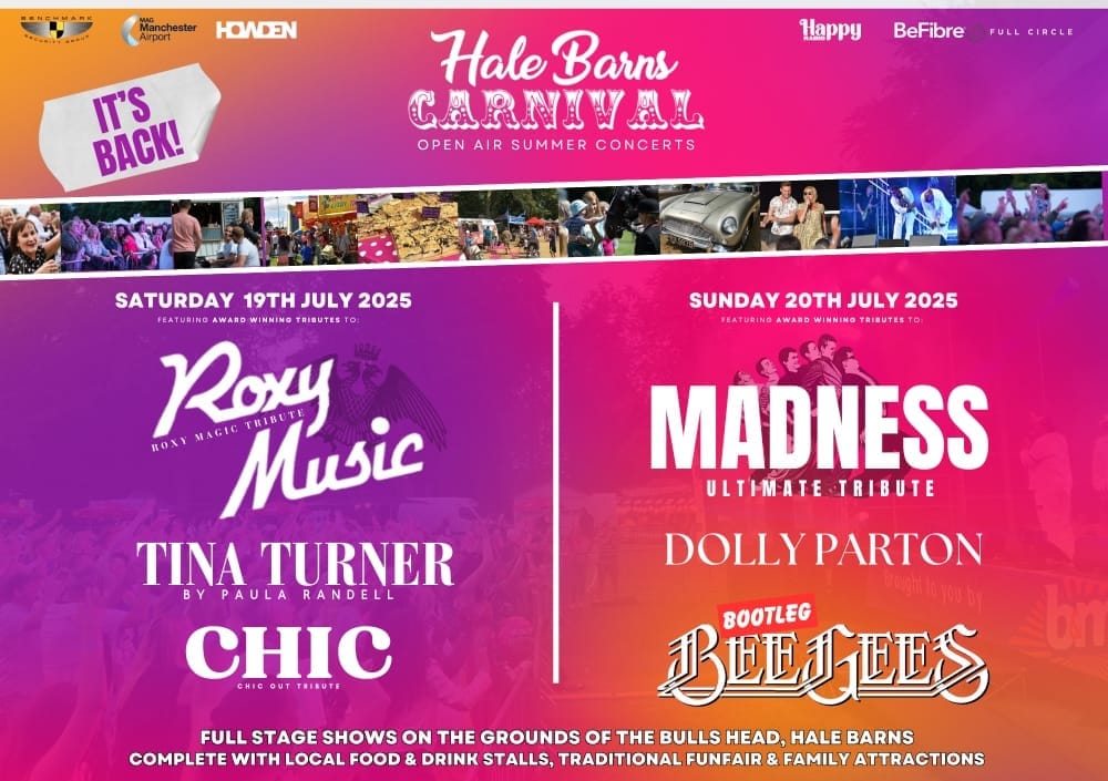Since its launch nine years ago, Hale Barns Carnival has welcomed top talent including 10CC's Graham Gouldman, Rose Royce and Russell Watson, while raising funds for community causes. The event helped make the long-awaited community hall a reality in 2023.