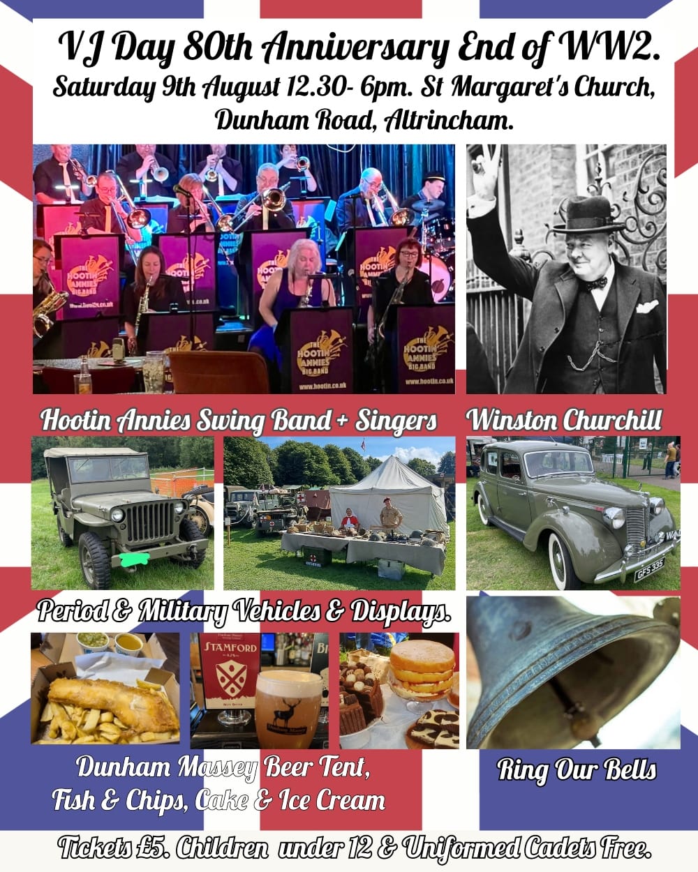 The 17-piece Hootin Annies Big Band will provide authentic swing music alongside performers Krys Kiss and the Frog, while visitors can enjoy traditional fish and chips from the NAAFI tent, sample local brews from the Dunham Massey Beer tent, and indulge in proper tea and cake.