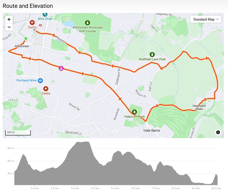 The Altrincham 10K route